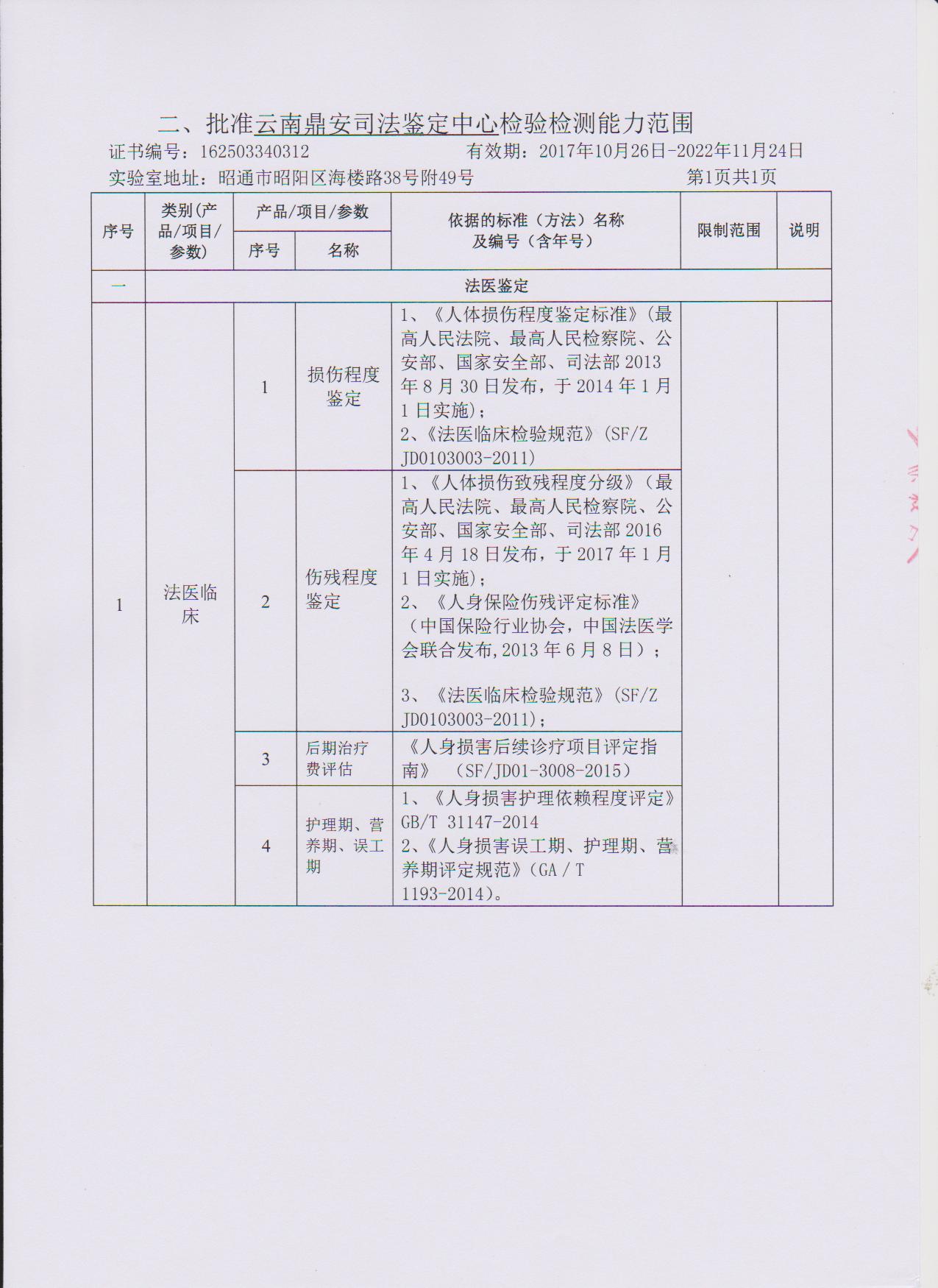 經(jīng)技術評審審核認定的檢測項目(第一類業(yè)務 合計110項)