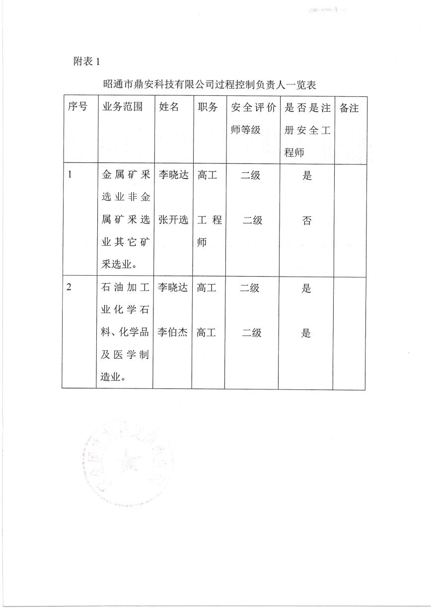 關(guān)于昭通市鼎安科技有限公司專職過程控制負(fù)責(zé)人的通知