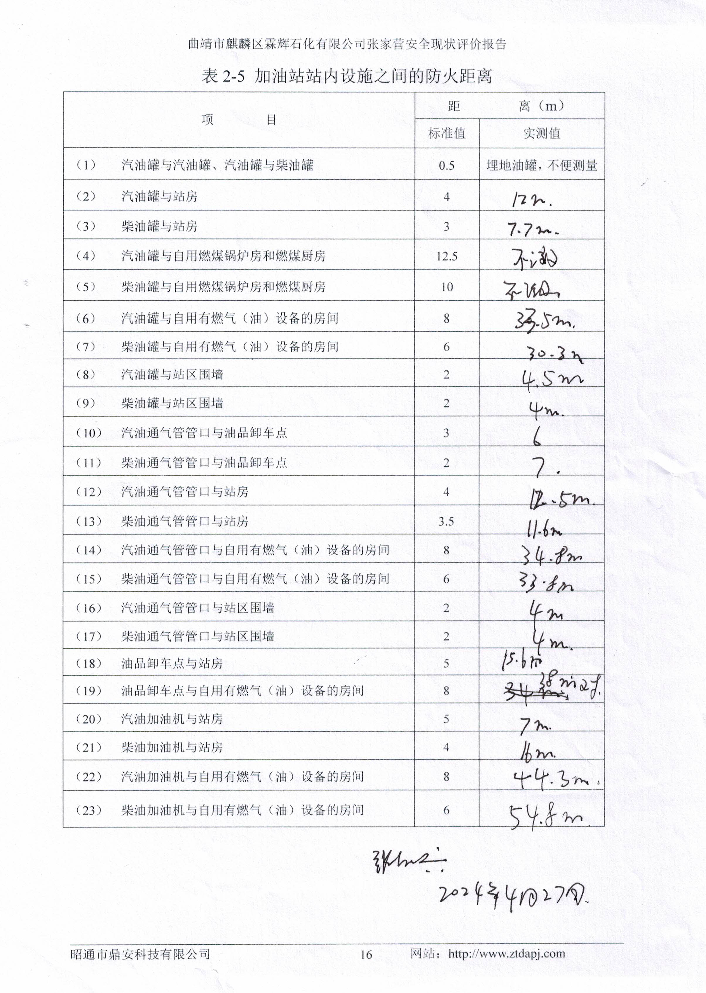 曲靖市麒麟區霖輝石化有限公司張家營加油站安全現狀評價報告