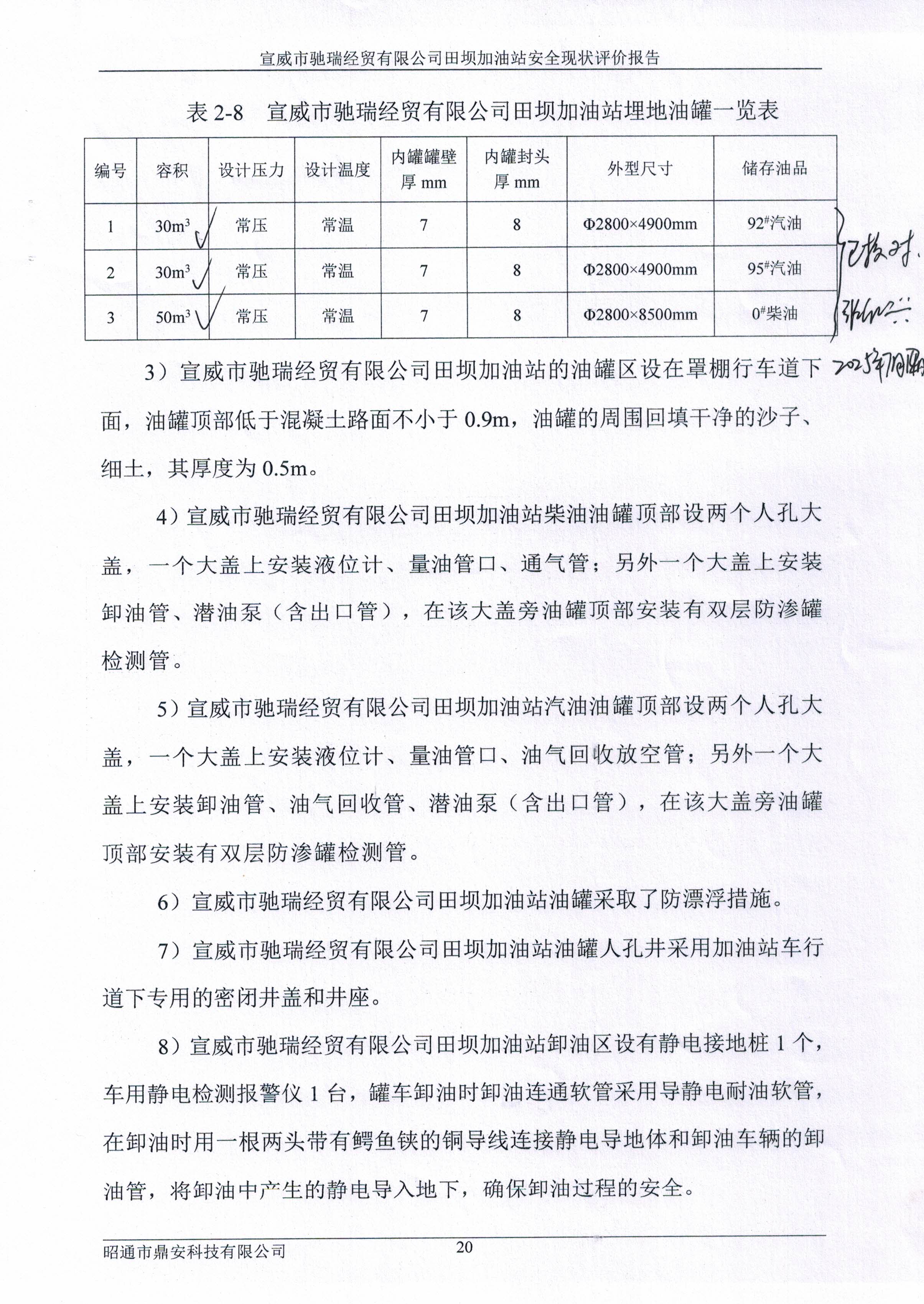 項目名稱 | 宣威市馳瑞經貿有限公司田壩加油站安全現狀評價報告 | 合同編號 | DAAPQJ2025-11 | |||||